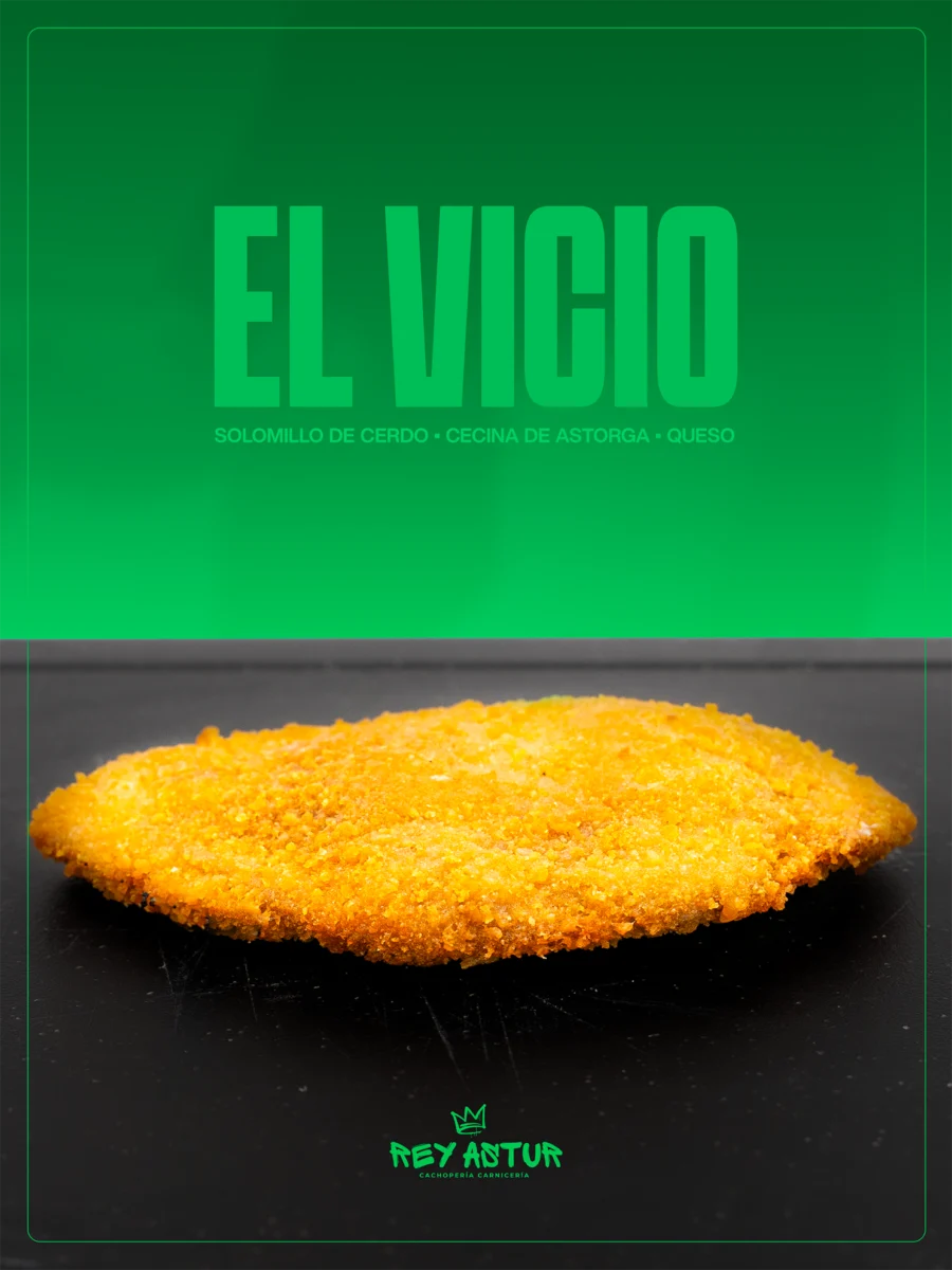 El Minero es un cachopo construido desde la profundidad del sabor. La Ternera Asturiana, jugosa y bien estructurada, sirve de base a un relleno donde la paleta ibérica aporta matices curados y una salinidad elegante, mientras el queso Los Cameros semicurado de tres leches se funde lentamente, ofreciendo una cremosidad rica y envolvente que da cohesión al conjunto.