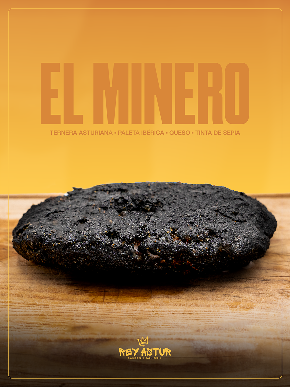 Un tributo directo a la memoria minera asturiana: profundo, oscuro, intenso y lleno de fuerza. Dos filetes de Ternera Asturiana —tierna, sabrosa y de carácter— envuelven un relleno de paleta ibérica y queso Los Cameros semicurado de tres leches, que aporta una cremosidad rica y equilibrada.